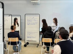 学生は、社会人向けに作られた「自己肯定感を高めるプログラム」を体験。グループワークを中心に、互いに刺激を受けながら内省を深め、自己肯定感への理解を深めました。体験後は、自身の学びをどのように社会に還元できるかを検討し、クラブ活動やアルバイト先、ゼミ、家庭など、様々な場面で相互の自己肯定感を高めるための活動を実践。さらに、自分自身や周囲との関わりで起きた変化を振り返り、本プログラムを発信するための記事やプレゼン資料の作成に取り組みました。